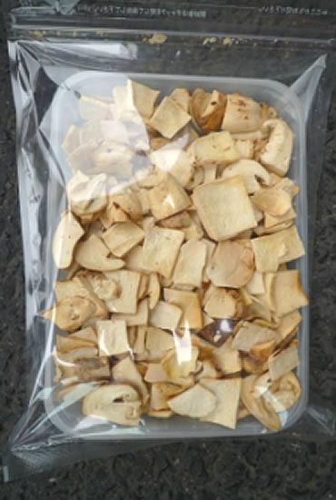 これにより松茸本来の風味が損なわずに、乾燥加工することができ、お湯だけで数十秒で戻る松茸の製造が