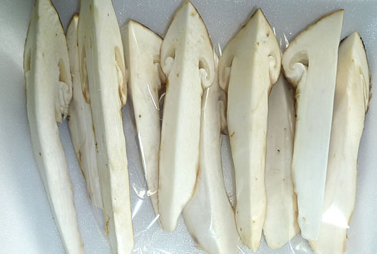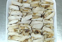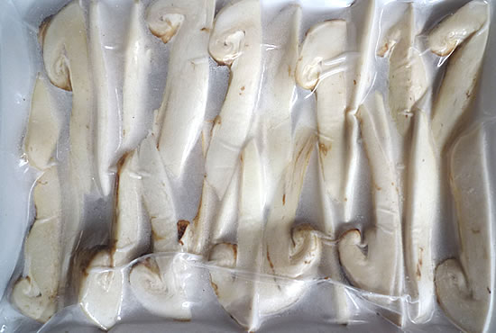 生松茸を洗浄の上、スライスもしくはそのまま凍結させる方法が主体となっております。