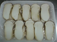 | 冷凍松茸 | 生の松茸を洗浄・スライス後、若しくはそのまま(スライスせずに丸のまま)凍結しておりますので、解凍せず、そのまま調理して下さい。解凍しますと、松茸のうま味がドリップとして(離水)失われてしまいます。 | 松茸ごはん、天ぷら、かき揚げ、そば、うどんなど |